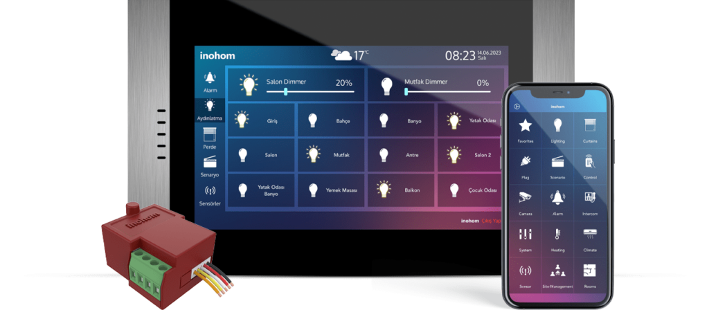 İnohom 1 Kanal Dimmer Modülü (AO1710), konvansiyonel anahtarlarınızın veya kablolu sensörlerinizin İnohom kablosuz akıllı ev sistemine entegrasyonunu sağlar. Programlanabilir 2 kuru kontak girişine sahip olan bu modül, dimlenebilir aydınlatmaların hassas kontrolünü de gerçekleştirir. Dim seviyesinin 0 değerine ulaşması gerektiğinde balast dengesizliği oluşursa, üzerindeki röle aracılığıyla enerji kontrolü sağlanır. Bu sayede güvenli ve verimli bir kullanım sunar. 12VDC veya 240VAC besleme voltajı seçenekleri ile farklı modellerde üretilen AO1710, standart anahtar kasalarına yerleştirilebilir ve marka bağımsız kalıcı anahtarlar veya yaylı anahtarlar ile kolayca kullanılabilir.