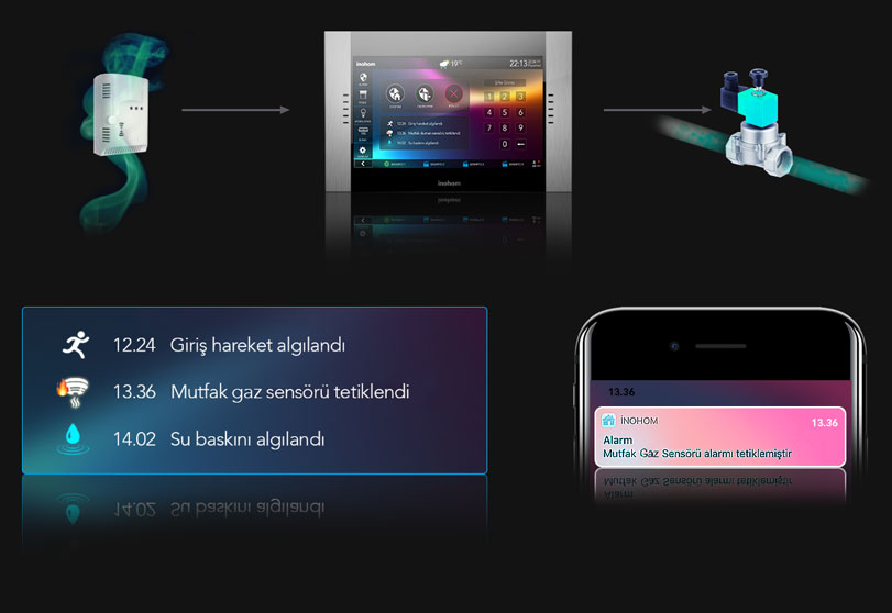 İnterkom araması veya alarm durumlarında, İnohom anında bildirim göndererek her türlü duruma karşı anında haberdar olmanızı mümkün kılar.