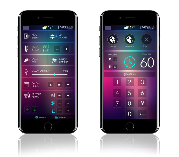 Kullanıcı dostu arayüzü, iOS ve Android işletim sistemlerine uyumlu olarak geliştirilmiş olup, nerede olursanız olun yaşam alanınızı kolayca yönetmenizi ve izlemenizi sağlar.